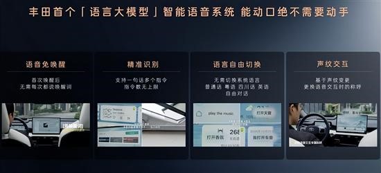 丰田首个语言大模型的应用,实现了免唤醒、多指令并行、四语种的自由切换。无需说“你好丰田”,直接下达“打开车窗、调空调24度、播放周杰伦歌曲”等连续指令,系统均可精准执行;普通话、粤语、四川话、英语的混合对话无需切换系统语言,适配多元使用场景。