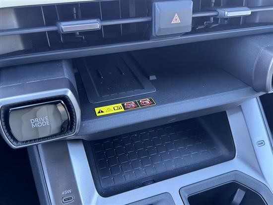 座舱空间方面,多功能中央扶手可左右双侧开启并翻转作为托盘,可拆卸杯架能灵活拓展储物空间,门把手集成防滑储物格,兼顾实用性与人体工学。全车配备1个无线充电板(50W高效快充+散热功能)与5个Type-C充电口,确保全车乘客实现“充电自由”。